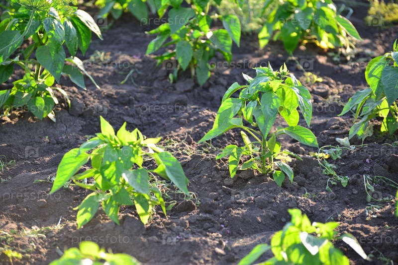 Рассада перца в саду