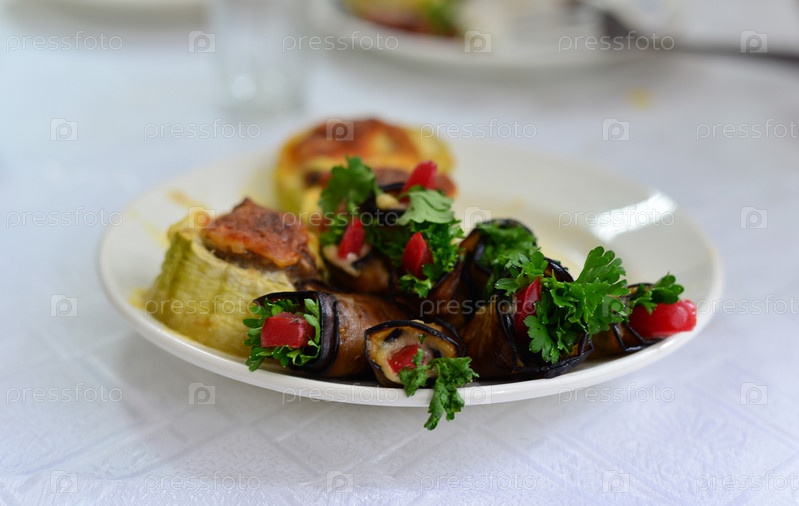 Баклажаны, цукини, фаршированные мясом, рисом и грибами