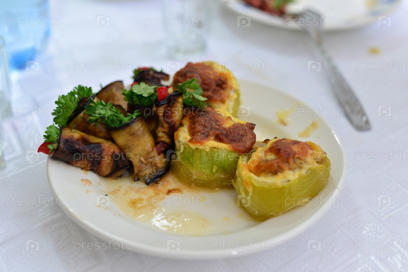 Баклажаны, цукини, фаршированные мясом, рисом и грибами