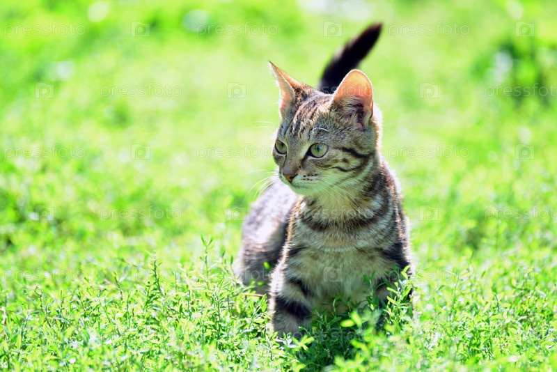 Красивый леопардовый кот в траве