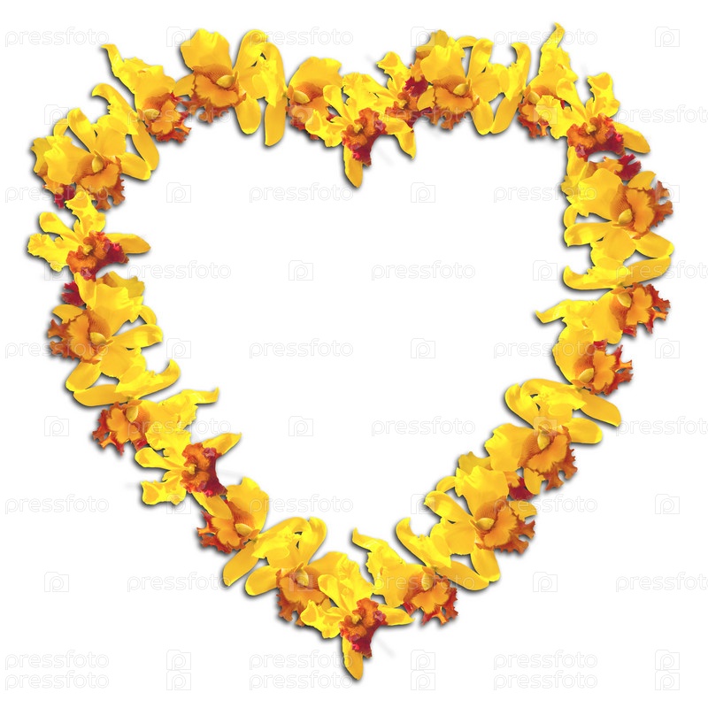 Рамка, желтые орхидеи в форме сердца на белом фоне