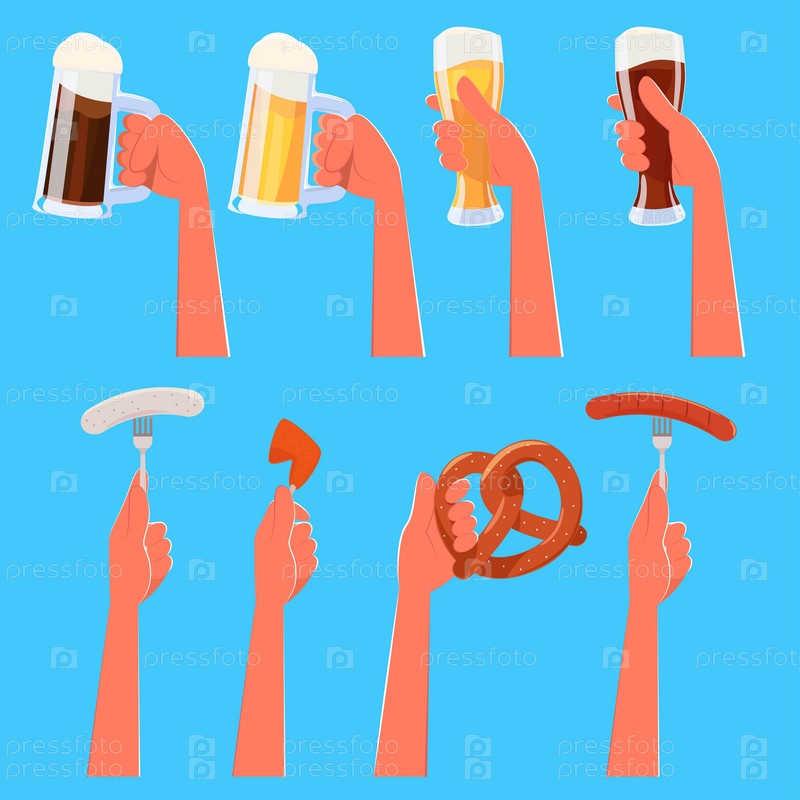 Руки с пивом и едой, набор
