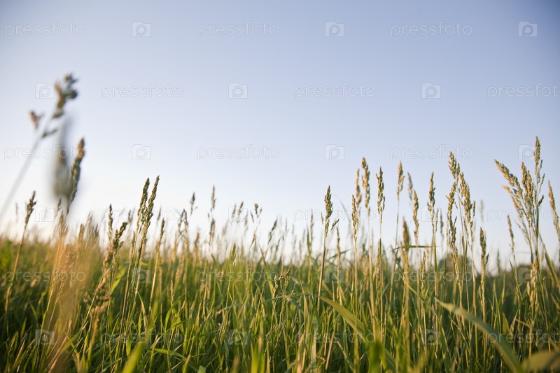 Зеленый луг под голубым небом