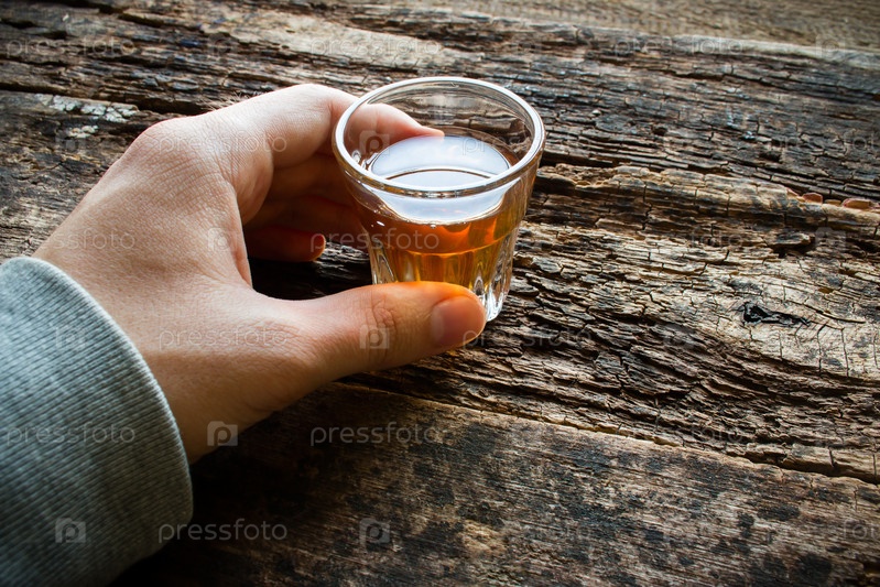 Мужчина держит рюмку коньяка