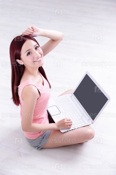 Красивая девушка с ноутбуком