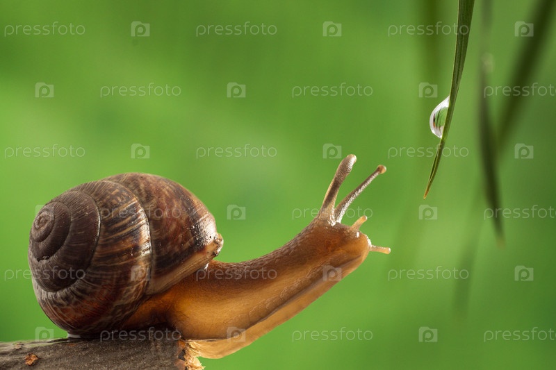 Садовая улитка тянется к капельке воды