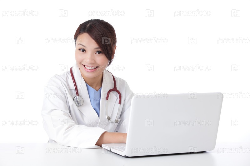 Женщина-врач за ноутбуком