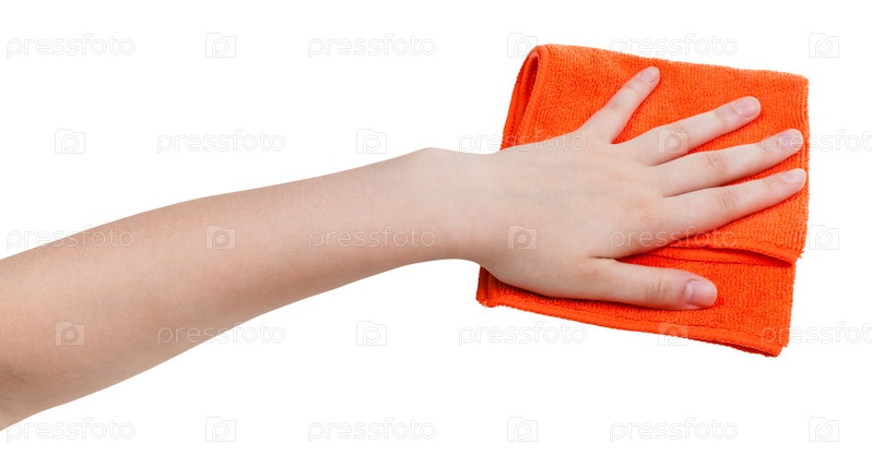 Рука вытирает пыль тряпкой