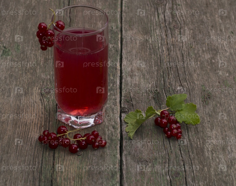 Стакан красного сока и смородина для декорации