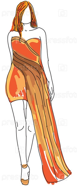 Женщина в оранжевом вечернем платье