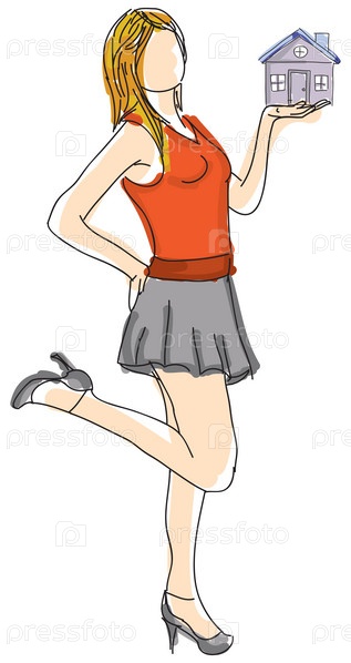 Молодая девушка держит дом на ладони