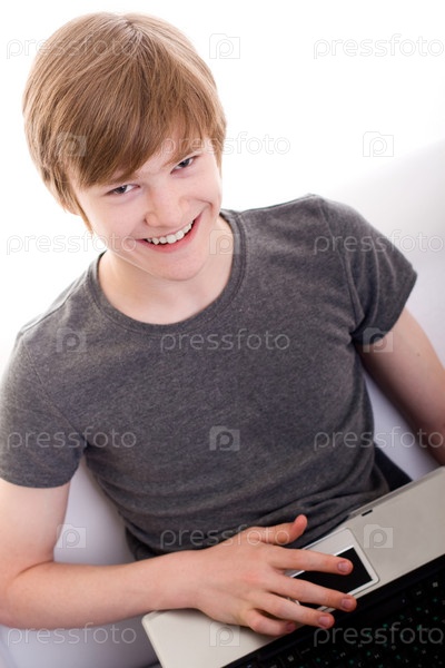 Улыбающийся подросток с ноутбуком