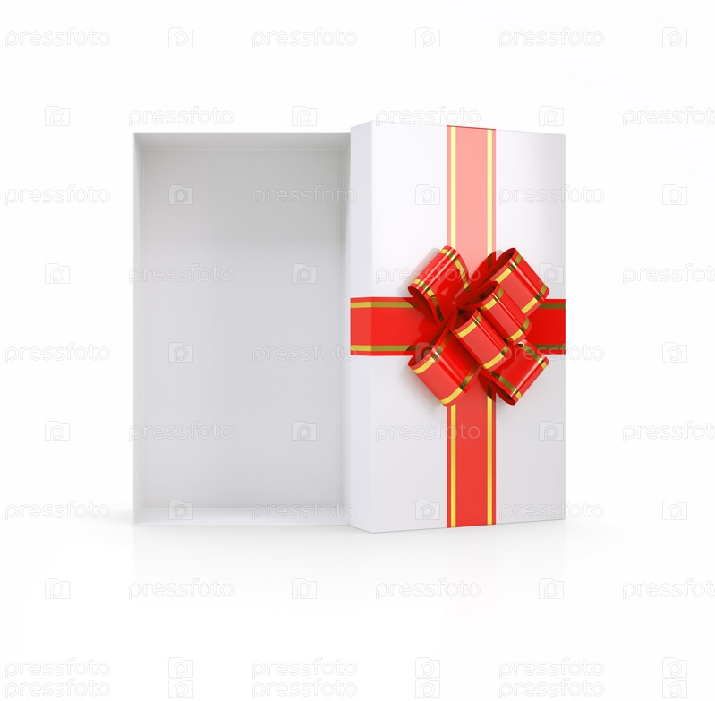 Подарочная коробка с лентой на белом фоне