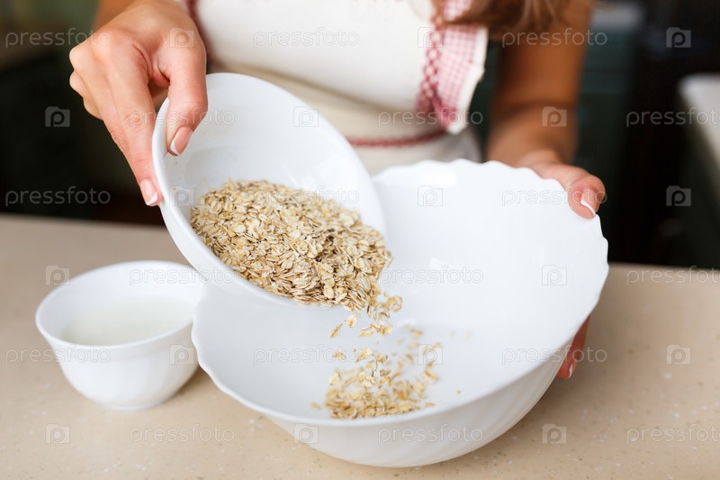Молодая женщина, сделать тесто из овсянки