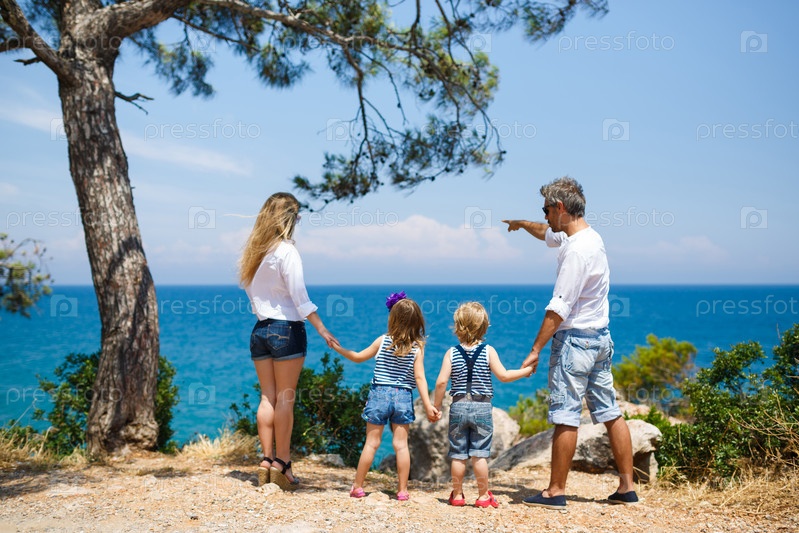 Семья с двумя детьми на берегу моря