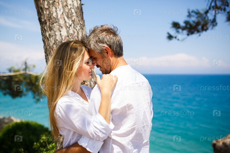 Счастливая пара на берегу моря