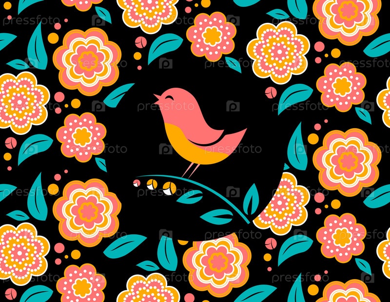 Цветок пригласительная открытка с пение птиц и бесшовный фон в фоновом режиме