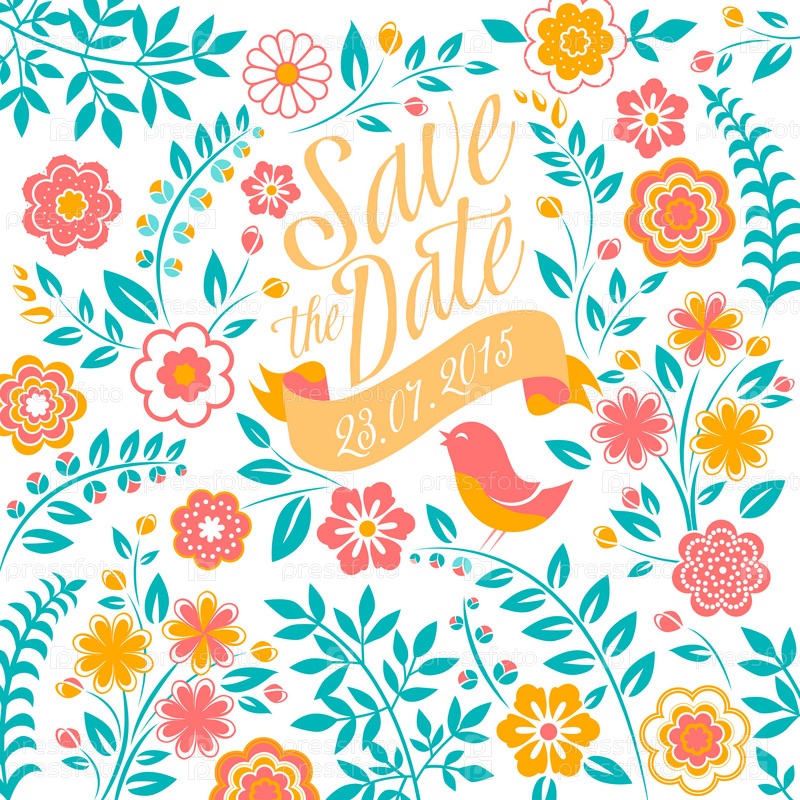 Свадебная пригласительная открытка с цветами, сохраните приветствие Дата
