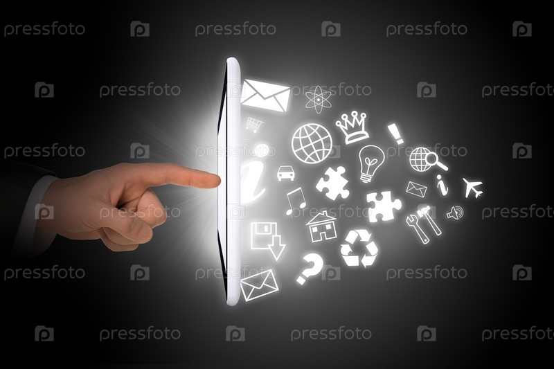 Планшет с иконами и указатель палец