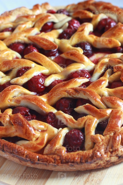 Домашнее вишневый пирог с декоративной решеткой