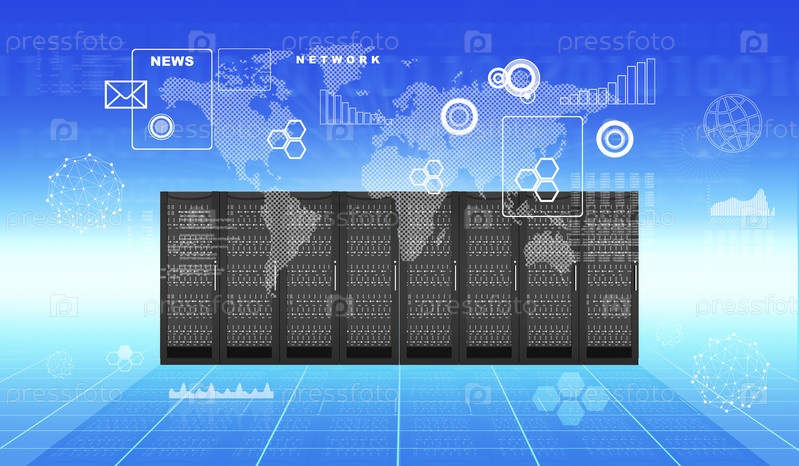 Металлические шкафы на абстрактный фон с картой мира, вид спереди