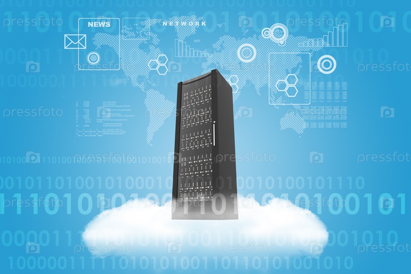 Стальной шкаф на облако в небе с картой мира