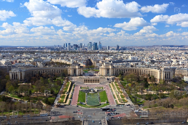 Садово-парковый комплекс Трокадеро и деловой центр Парижа, вид с Эйфелевой башни