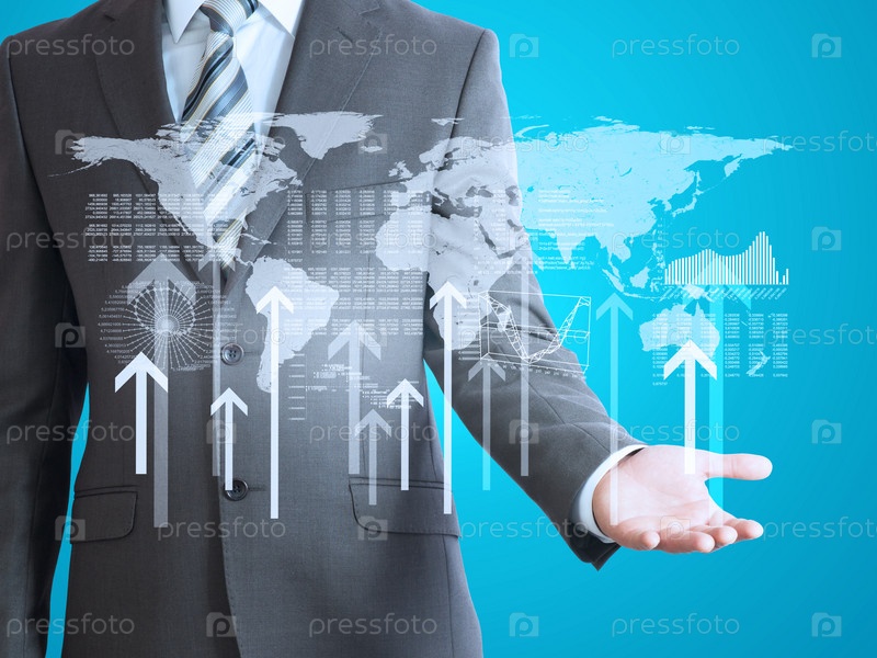 Бизнесмен с 3D-моделью карты мира