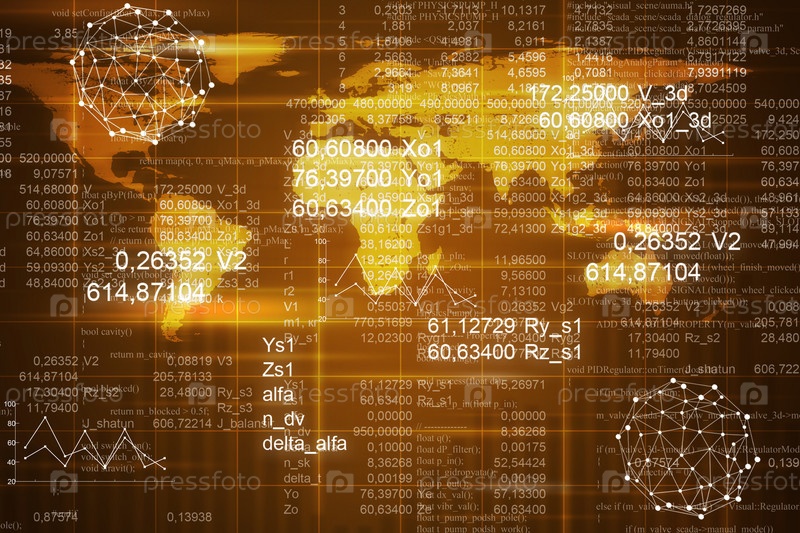 Абстрактный фон с картой мира, молекулы и графиков