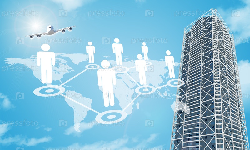 Проект строительства с картой мира на фоне голубого неба