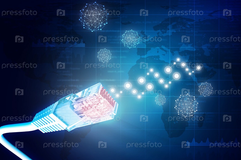 Компьютерные провода на синем с графами