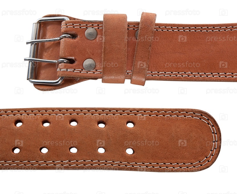 Коричневый кожаный ремень на белом фоне