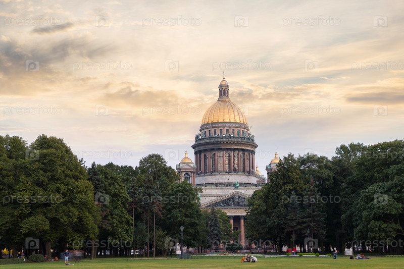 Исаакиевский собор в вечернем свете. Собор преподобного Исаакия Далматского