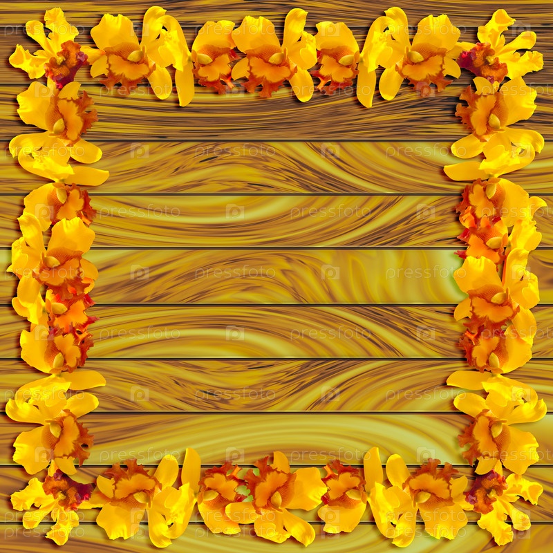Рамка желтые орхидеи на фоне деревянной доски