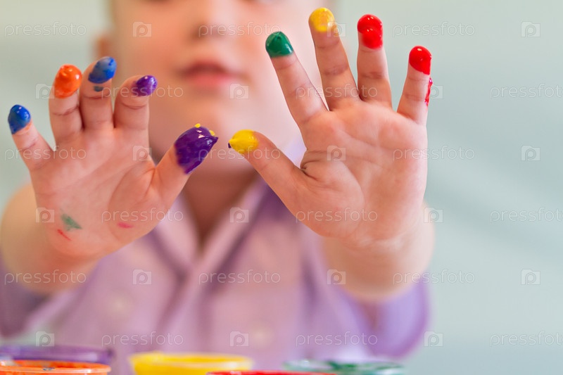 Мальчик рисует красками