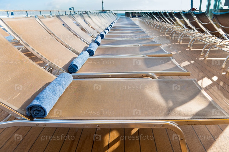Шезлонги на верхней палубе круизного лайнера