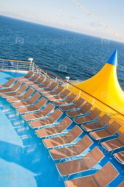 Шезлонги на верхней палубе круизного лайнера