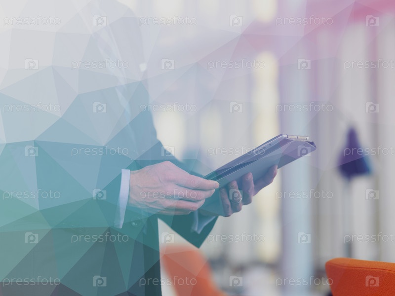 Старший бизнес человек работает на планшетном компьютере