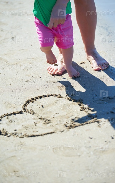 Мама и ребенок на пляже весело