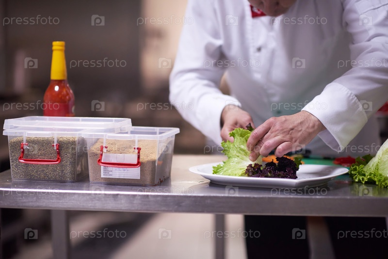 Шеф-повар отеля кухне готовит и украшения продуктов питания