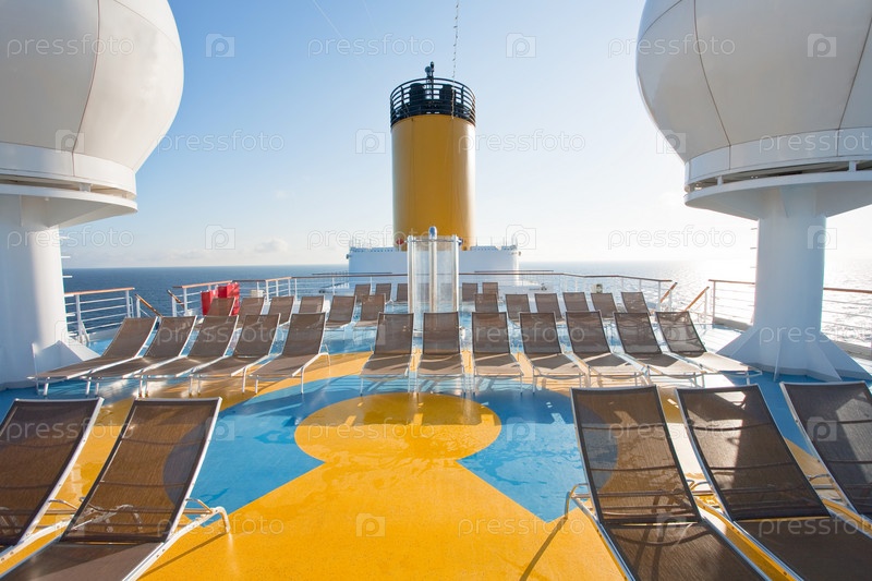 Шезлонги на верхней палубе круизного лайнера