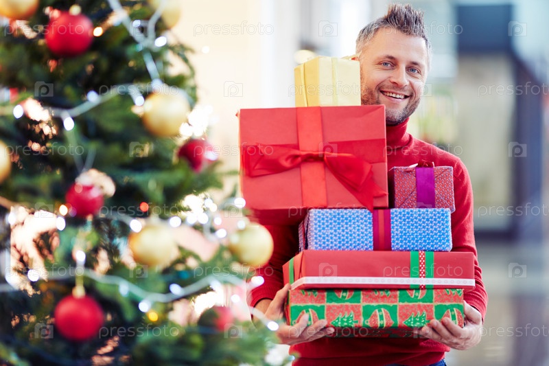 Счастливый человек с подарками