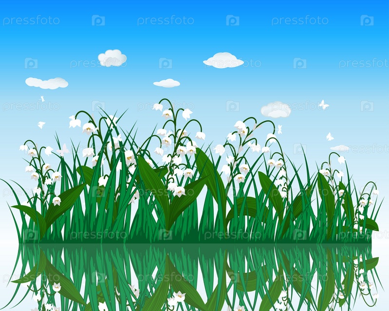 Цветок с травой на поверхности воды