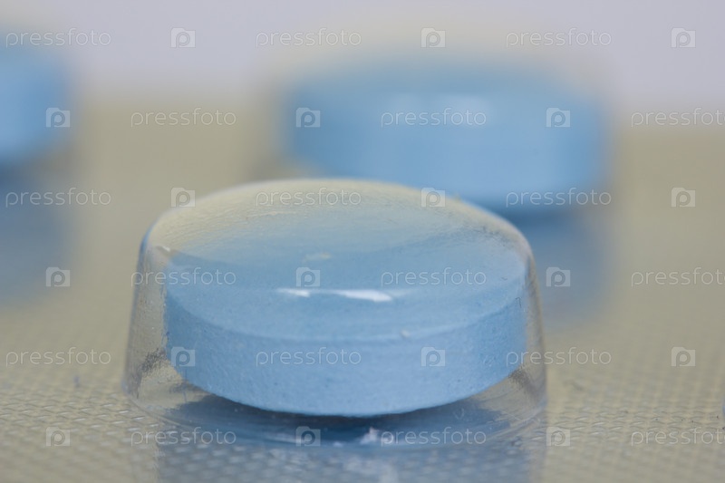 Синяя таблетка в пластиковом блистере