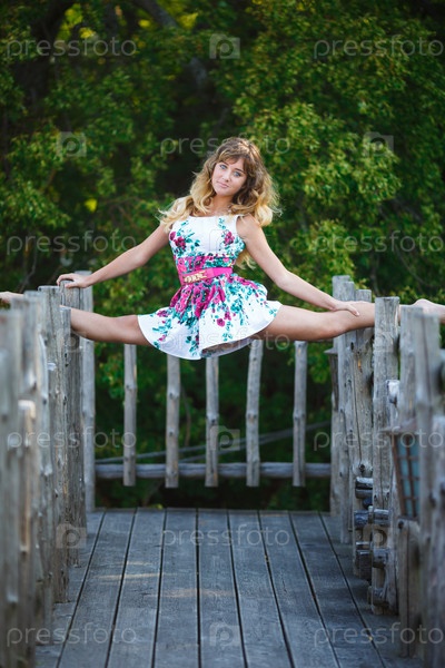 Привлекательные молодая девушка делает упражнения Сплит