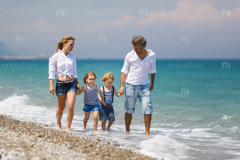 Семья с двумя детьми на пляже