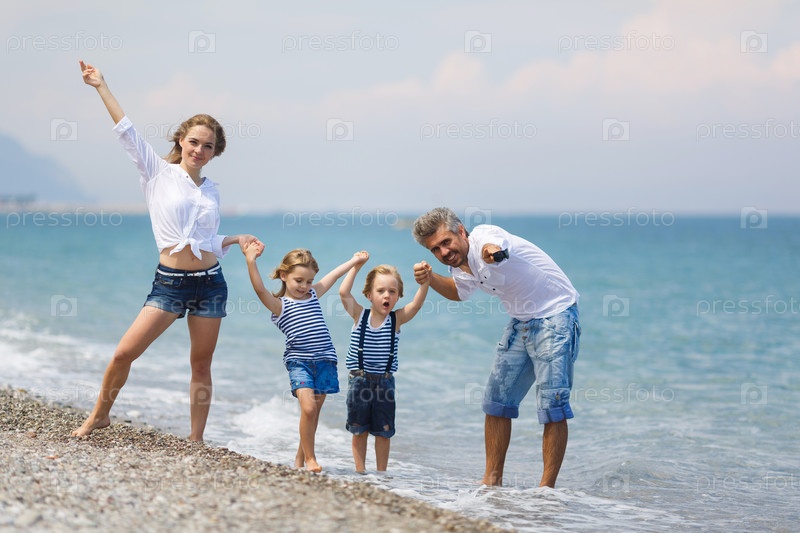 Семья с двумя детьми на пляже