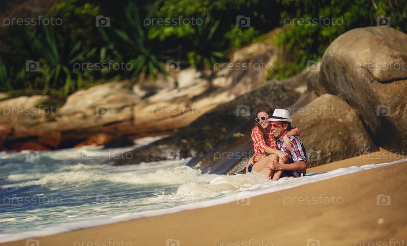 Счастливая пара на пляже