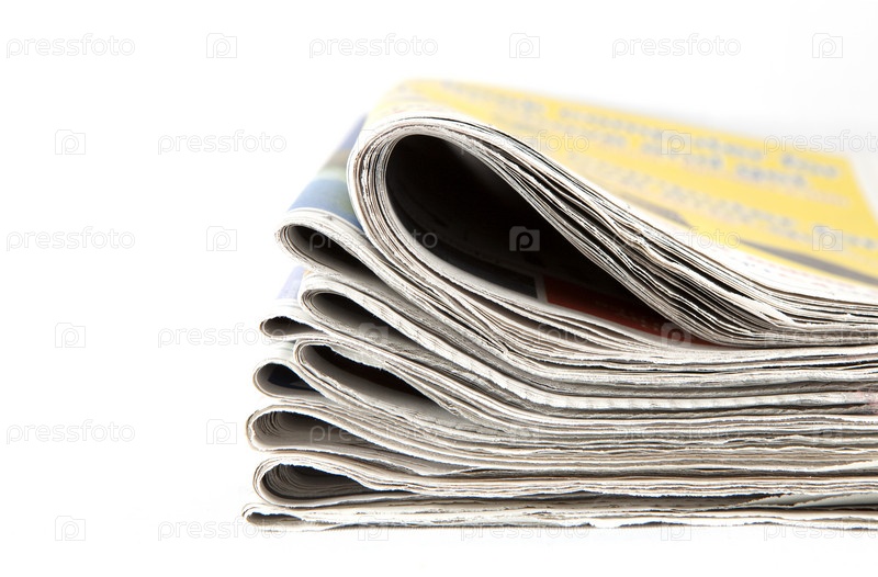 Стопка газет на белом фоне