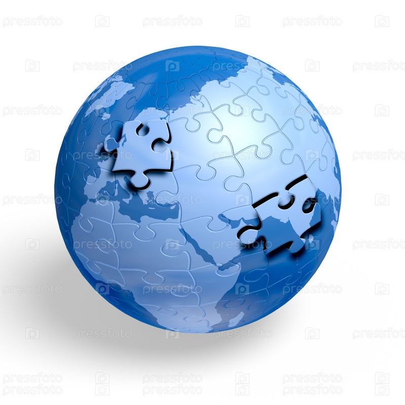 Земной шар из пазлов, иллюстрация на белом фоне